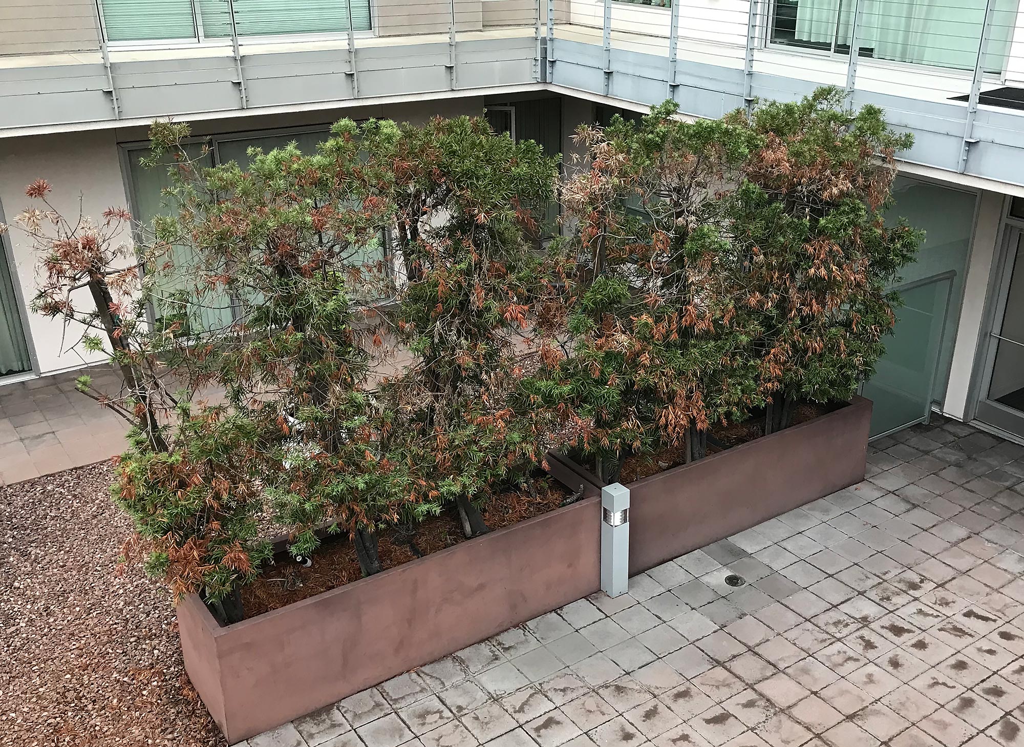 It was a very hot summer and the plants in our courtyard were withering away. One reason was that they were only getting watered once a week, and the other reason was that the gardeners that were watering them once a week didn't always show up. I brought this up with Michelle Anderson and she actually laughed, and said, "it's hot, that's happening everywhere", and that was the extent of her interest, and her help with this issue.