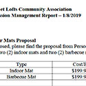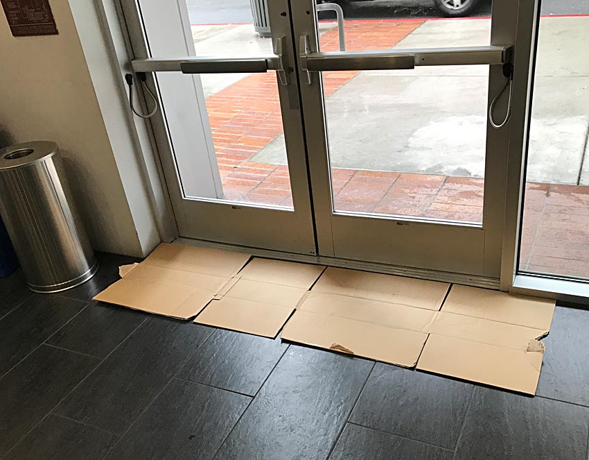 June, 2018: The floor mat in our lobby went missing. Janitorial was forced to put down cardboard boxes to keep the lobby floor from becoming an all day mess and a slip hazard during rain storms. In spite of regular reminders that this was an issue, Action didn't get a proposal in front of the board for new floor mats till Jan, 2019.