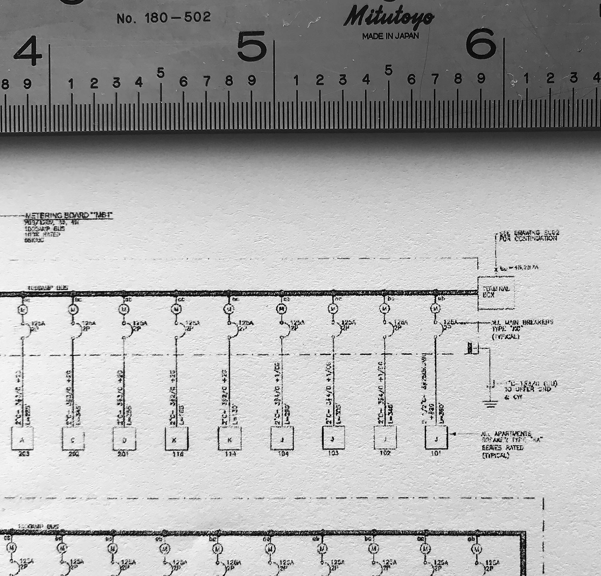 One of the requirements of passing the annual LAFD Reg 4 safety inspection of the building is having a copy of a specific portion of the building electrical plans (the Single Line Diagram) posted in the electrical room. I became aware that this document was missing from our electrical room in 2018 after the first Reg 4 inspection after being elected to the HOA board. The only version that I could find in the building was part of a set of very illegible master plans. Since it was the closest thing we had at the moment that would bring us into compliance, the document was passed to our substitute building manager at the time with instructions to make copies so we could return the original to the master plans and get a copy into the electrical room.