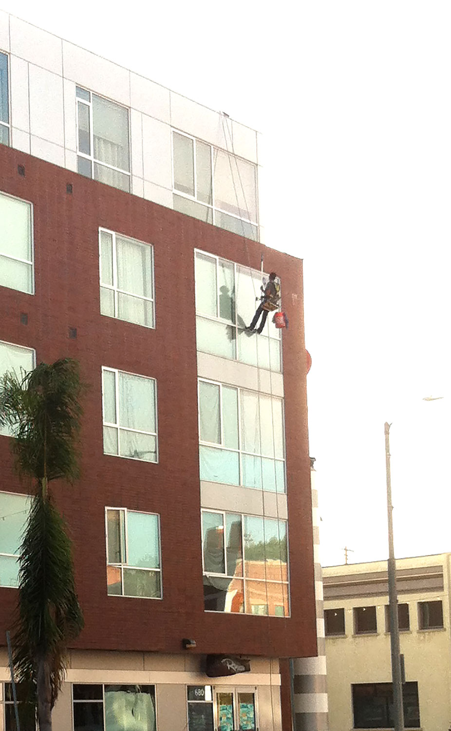 Action Property Management was specifically instructed not to hire window washers that would need to rappel from the roof. This is what we got: