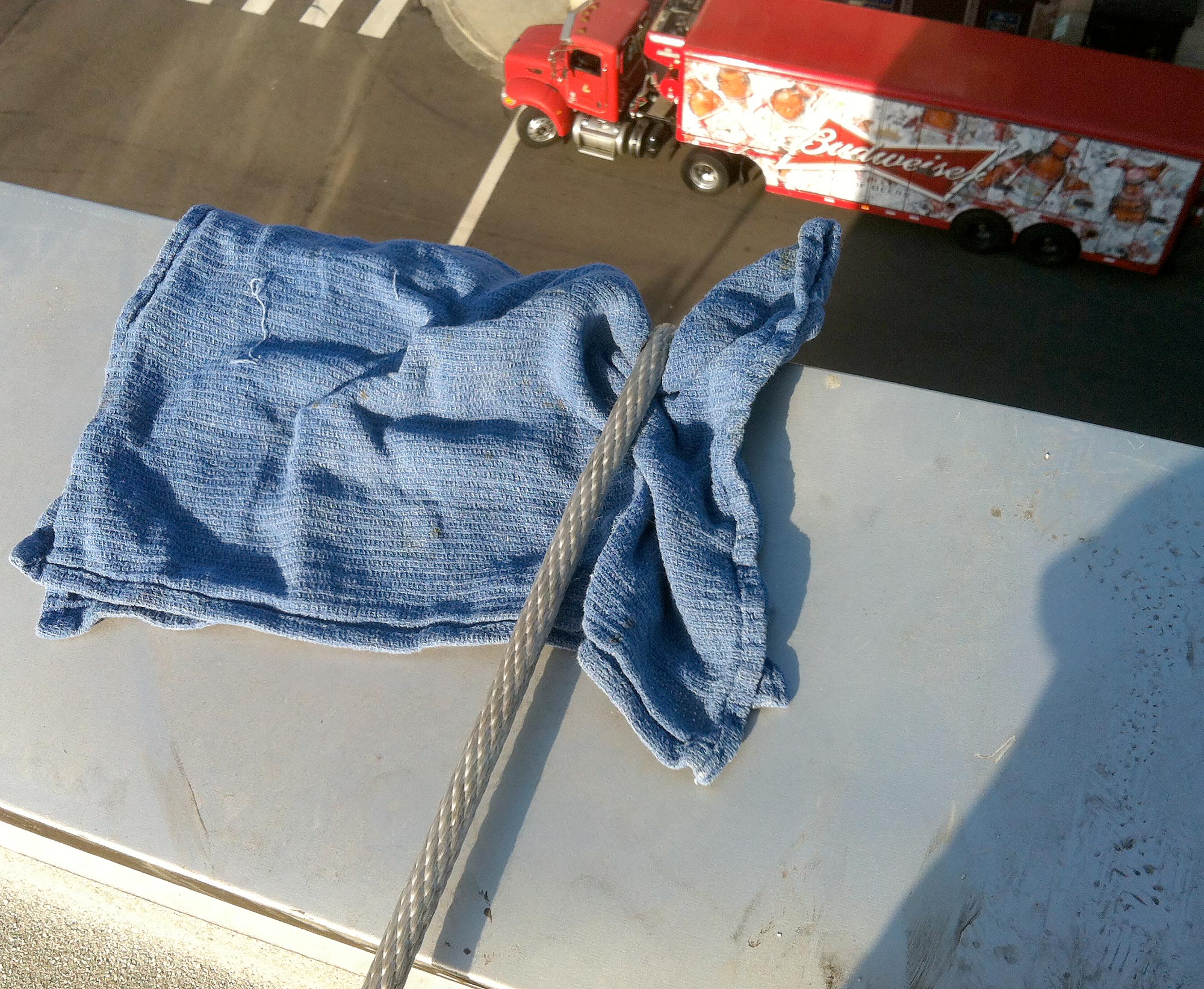 I tell Action every time we have the windows cleaned that the vendor is NOT to do any type of repelling from the roof... ...Besides the roof, this also damages the railing and stucco.